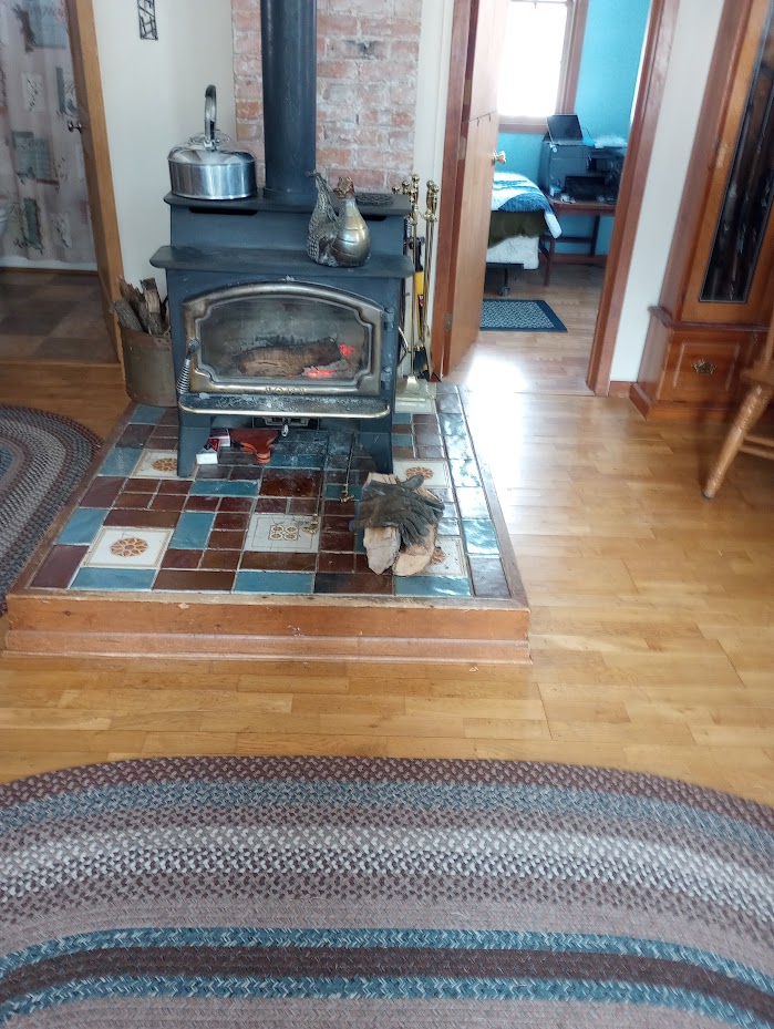 It really is an established science to setting a fire in the beautiful wood stove. All firebrick sides, top and bottom. Heavy steel and a glass front door. Brass around the door. It is right in the middle of the house and has been on it’s hearth for over 30 years. It’s predecessor did not have firebrick nor thick steel. Julie was on her way to the bathroom when she saw a red glow from a hole in the firebox.